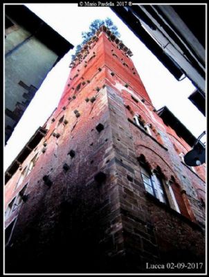 e dietro, voltandosi il campanile di San Frediano, rettangolare