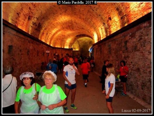 Lucca di Notte parte di giorno, trova il buio nei camminamenti sotto le mura e anche alla zona partenza e arrivo (sotto le mura). Poi si snoda in città e prima dela fine ci fa uscire e rientrare dalle mura. Sabato sera, lampi lontani, in un cielo che diventava rossastro e striato da veloci fulmini meno male lontani, dava un attimo di paura e di suspence all'avventura. Perchè girare per Lucca è per tutti un'avventura...figuriamoci per un pisano. Mario è un pisano che si avvicina a Lucca, Ponteasercio, già i benefici della lucchesità glieli porta il fiume nostro e lui ne frequenta assiduamente la foce. In quel luogo non è difficile imbattersi negli odori delle polveri da lavatrice che l'acqua del Serchio, scontrandosi con quelle del mare, alza nell'aria. Di quelle se ne sente l'odore. Delle tradizioni, culture garfagnine, della parsimonia lucchese e dei loro sogni, sicuramente si alzano in aria ma non se ne avverte l'odore. Ma Mario le assorbe, sicuramente, a piene mani.