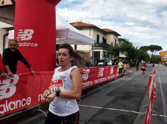 Al primo passaggio sotto l' arco dell' arrivo volgo lo sguardo dietro per vedere sul display il tempo, ,sono poco sopra i trenta minuti, un buon passaggio mi dico,col passare del tempo il cielo diventa sempre più blu e un sole caldo ci,mi riscalda fin troppo, al secondo passaggio comincio ad accusare un po di torpore e la stanchezza comincia a farsi sentire, in cuor mio decido di mollare, ma i tanti amici sul percorso mi invitano a proseguire, oramai manca solo un giro, non guardo il tempo, non ha importanza,proseguo riuscendo anche a rimontare qualche posizione su chi è partito forse un po troppo baldanzoso, mentalmente faccio il conto alla rovescia, meno 6,5,4,3,2,ultimo chilometro, novantasette metri è fatta, taglio il traguardo e stoppo il cronometro che in tutta la gara non ho mai guardato, un occhio all' orologio ufficiale e la sorpresa, stavolta che sono partito senza velleità di tempo ce la ho fatta, sono riuscito a rimanere sotto la soglia dei novanta minuti più volte inseguita, la felicità prende il sopravvento sulla stanchezza ed allora ringrazio chi mi ha sostenuto al di là delle transenne, finita la mia gara mi apposto nei pressi del gonfiabile in attesa della Caterina scattando qualche foto, poi al ristoro finale, una sana doccia, mamma mia quanto vuol dire avere la possibilità di togliersi di dosso lo stress e il sudore dopo la gara.