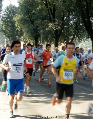 Stamani che non abbiamo assilli arriviamo fin troppo presto, ma non troviamo nessuna coda coda alle iscrizioni della non competitiva, i cartellini offerti sono di due tipi. uno al costo di cinque euro che da diritto ad una bottiglia di olio extra vergine di oliva da 750 M l ed uno al prezzo di un euro senza premio alcuno, gli atleti sono molti, ma non mi sembrano poi così tanti tenuto conto che questa edizione non avviene contemporaneamente con la maratona della città di Roma come le ultime edizioni ( gli organizzatori parlano di 2000 presenze).