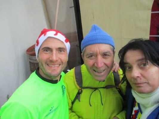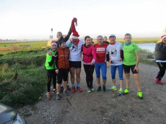 Lisena in grande forma, riposti i baffi e la barba bianca del Babbo Natale, chiamava a raccolto dall'argine i podisti, quasi massaia con i pulcini, per una foto che non può assolutamente mancare. Massimo Benvenuti stamani si era infiltrato fra il gruppo di Pisa, perchè, ha detto, gli dano nuovi stimoli per correre. Lui sinceramente non ha bisgono di stimoli, lui corre sempre e lo vedi e lo senti perchè la sua simpatia è straripante.