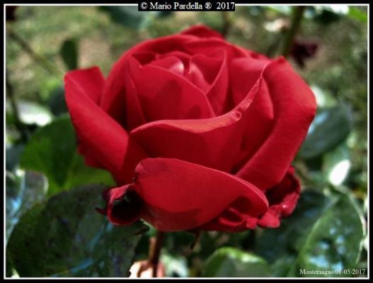 una rosa rossa, classica, carnosa come le labbra spagnole di una donna di Pamplona..